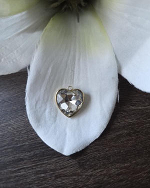 Roestvrij stalen (RVS) Stainless steel bedel Facet hart Gold-crystal 15*13mm