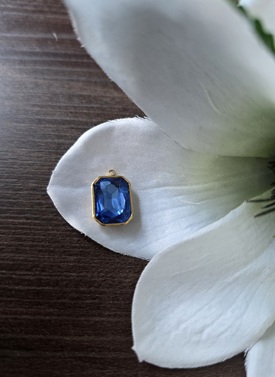 Roestvrij stalen (RVS) Stainless steel bedel Facet rechthoek Gold-dark blue 18*12mm
