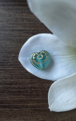 Acryl hart 16*18mm Teal blue – goud Rijggat: ca. 2mm