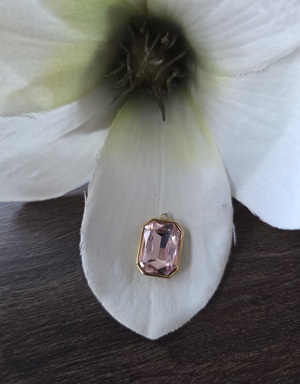 Roestvrij stalen (RVS) Stainless steel bedel Facet rechthoek Gold-pink 18*12mm