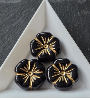 Acryl kralen bloem Black-gold 20,5*20,5mm rijggat 2mm
